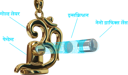 Nano-graphics refers to a technique used to inscribe text and images onto a very small area. To view the inscription, look through the crystal lens at the top of the pendant.